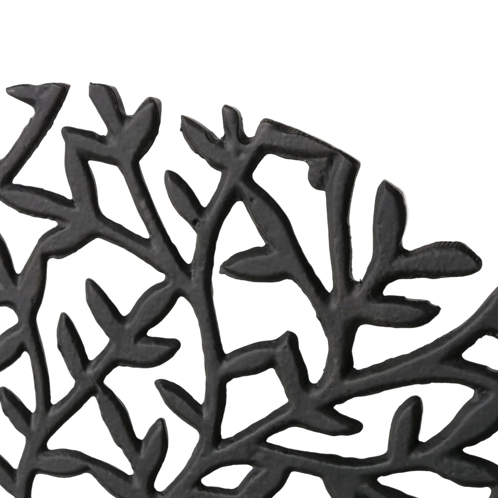 Der Dekoaufsteller Arboris präsentiert sich als kunstvoll gestaltetes Wohnaccessoire, das mit seiner markanten, organisch anmutenden Formgebung sofort zum Blickfang wird. Die runde Silhouette erinnert an ein stilisiertes Baumgeflecht und verleiht modernen wie klassischen Wohnbereichen eine dezente, zugleich ausdrucksstarke Note. Gefertigt aus pulverbeschichtetem Aluminium, zeigt der Aufsteller eine matte schwarze Oberfläche, die Struktur und Tiefe harmonisch betont. Die handgearbeitete Verarbeitung unterstreicht den hochwertigen Charakter und macht jedes Stück zu einem individuellen Dekoelement. Dank des stabilen Metallstandfußes lässt sich Arboris sicher auf Regalen, Sideboards oder Konsolen platzieren und setzt dort einen eleganten, kunstvollen Akzent.