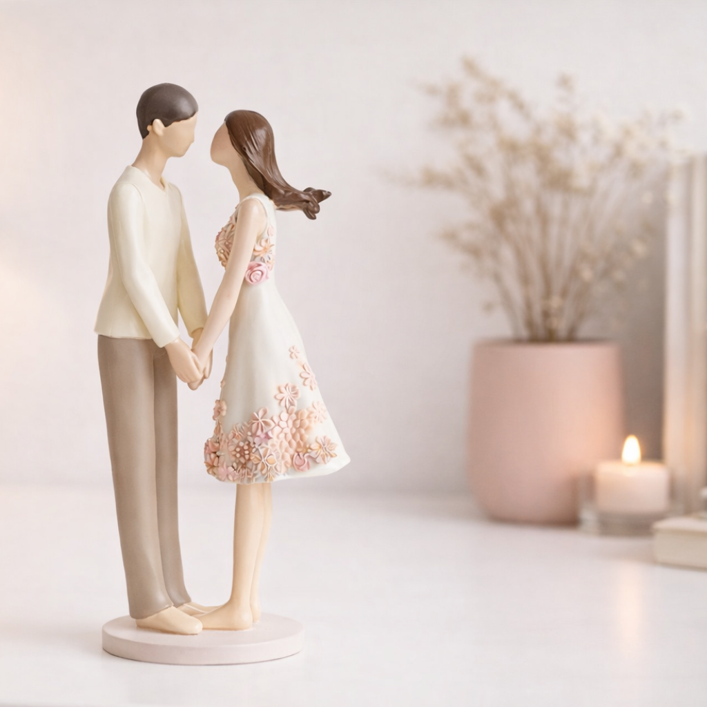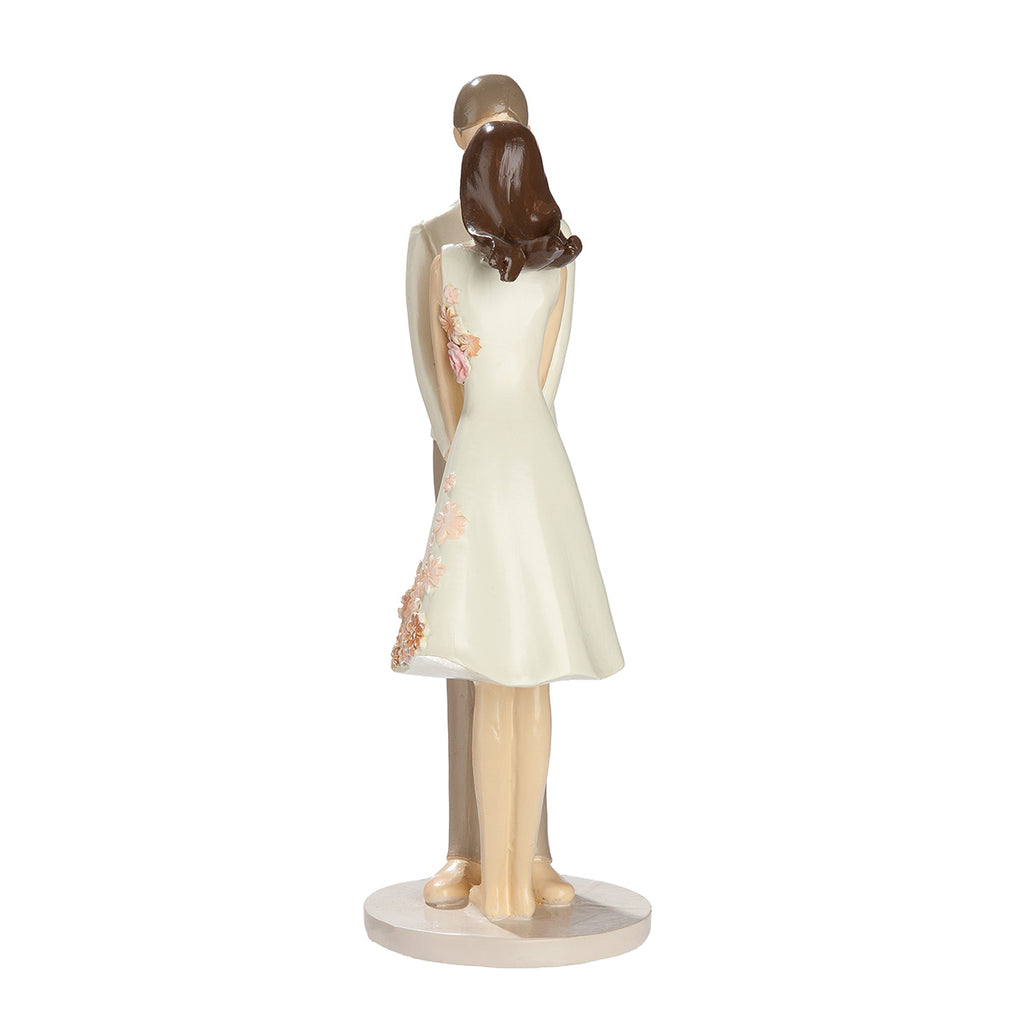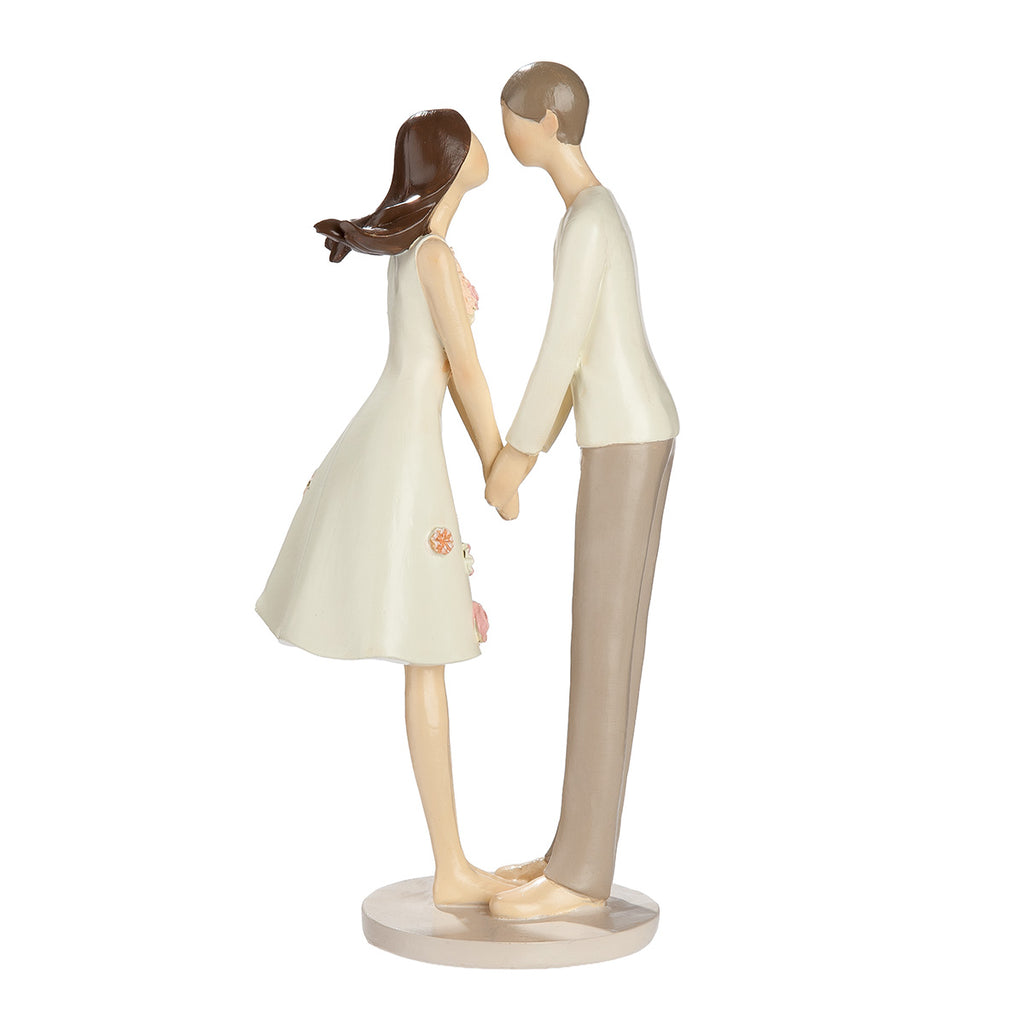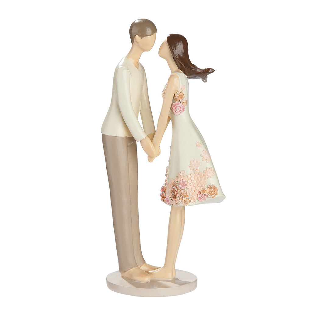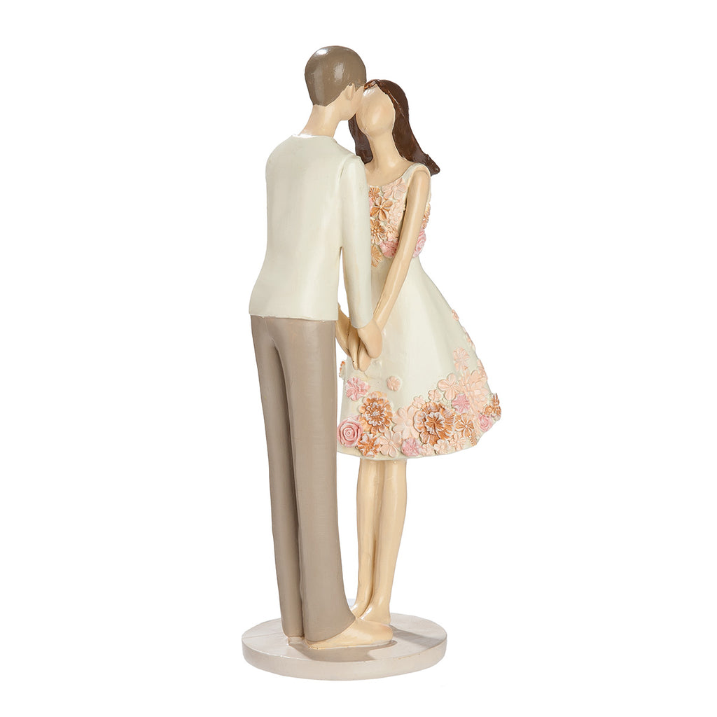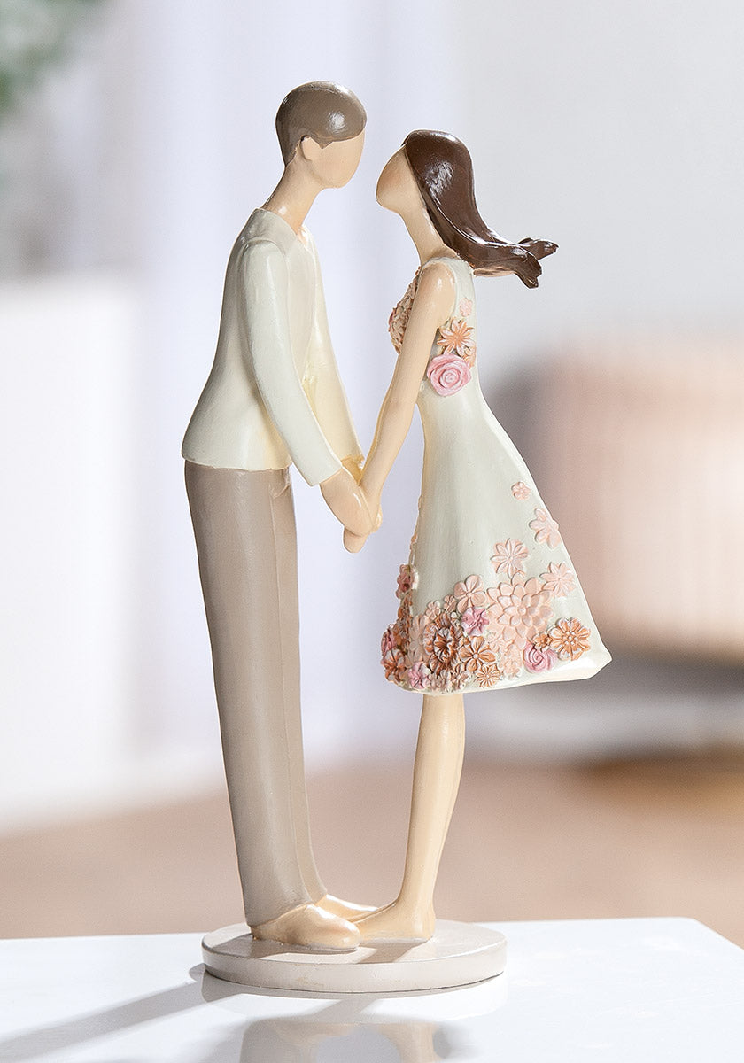 Die Dekofigur Liebespaar Floralia bringt eine ruhige und romantische Atmosphäre in jede Wohnumgebung. Die stilisierte Darstellung eines Paares, das sich liebevoll gegenübersteht und an den Händen hält, wirkt modern und zugleich zeitlos. Zarte Blumenapplikationen am Kleid verleihen der Figur eine elegante und dekorative Note. Die harmonische Farbgestaltung in creme und rosa wird durch feine braune Akzente ergänzt und unterstreicht den sanften Charakter des Designs. Auf einer stabilen Basis stehend eignet sich die Figur ideal als dekorativer Blickfang auf Sideboards, Regalen oder Konsolentischen und setzt besonders in Wohn- oder Schlafzimmern einen geschmackvollen Akzent.