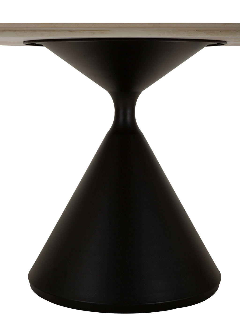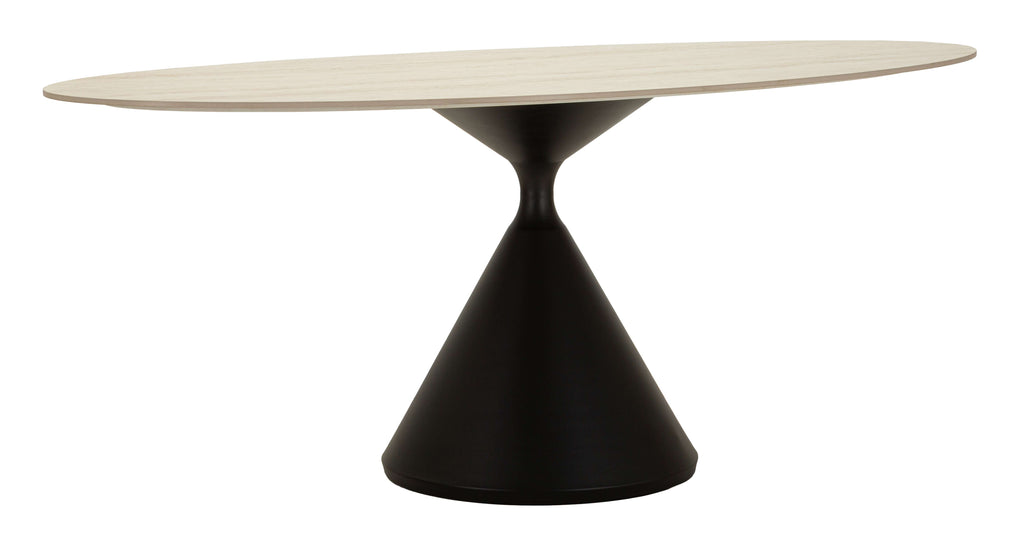 Der Esstisch Orion vereint modernes Design mit eleganter Formgebung und wird so zum stilvollen Mittelpunkt in Ihrem Essbereich. Die großzügige ovale Tischplatte in edler Holzoptik bietet reichlich Platz für Familie und Gäste, während das markante schwarze Metallgestell für Stabilität und einen zeitlosen Look sorgt. Mit seiner Kombination aus hochwertigen Materialien und außergewöhnlicher Form ist Orion nicht nur ein Esstisch, sondern ein echtes Statement-Möbelstück, das jede Einrichtung aufwertet.
