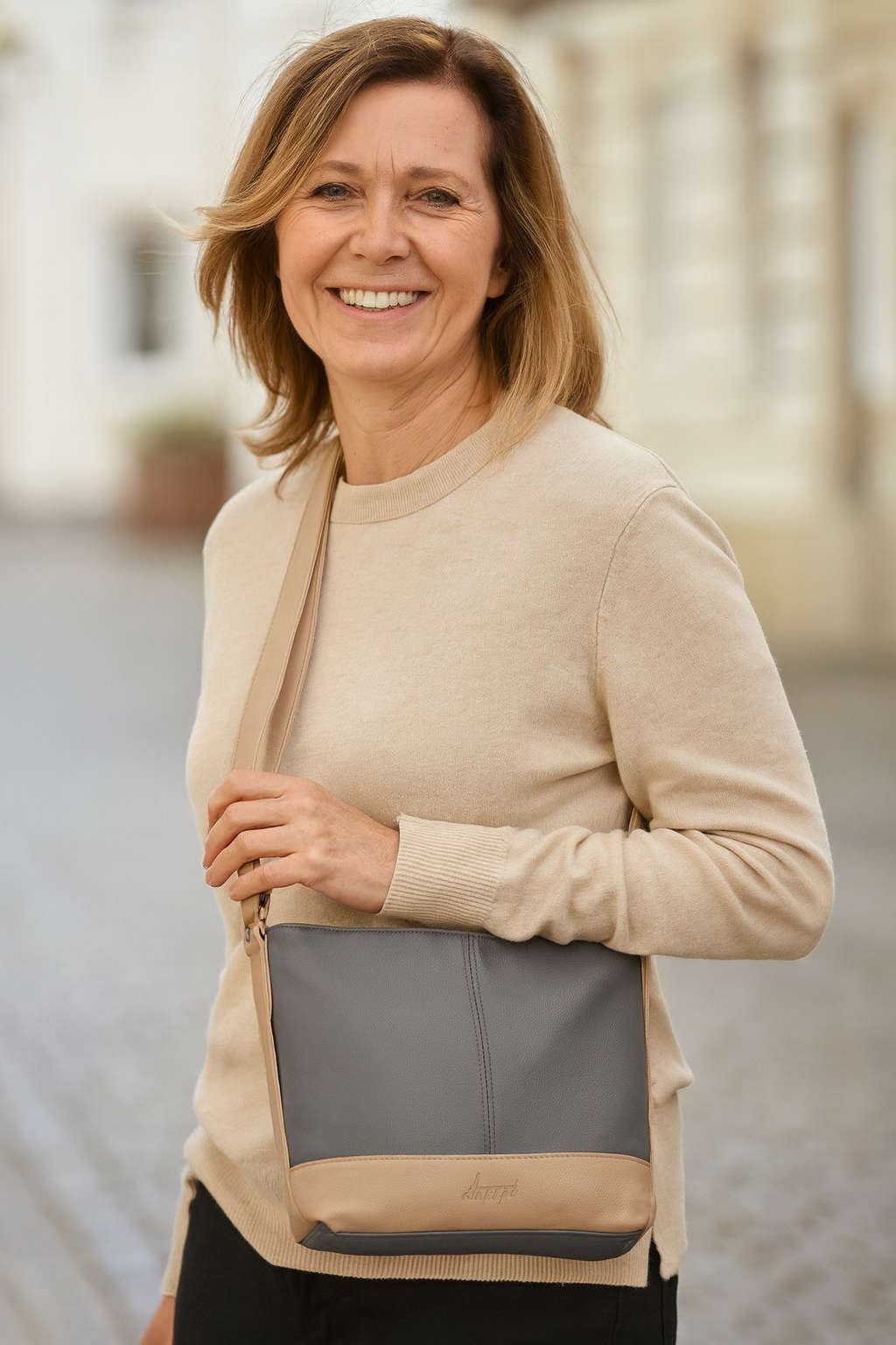 De Dariya schoudertas overtuigt met zijn stijlvolle design en verfijnde functionaliteit – een betrouwbare metgezel voor dagelijks gebruik, vrije tijd en kantoor. Gemaakt van hoogwaardig, onderhoudsvriendelijk PU-leer in een elegante grijsbeige kleur, combineert hij modieuze chic met praktische organisatie. Het ruime hoofdvak met rits biedt ruimte voor alles wat je onderweg nodig hebt. Daarnaast zorgen een buitenvak met rits, een binnenvak en twee vakjes voor je mobiele telefoon voor organisatie en snelle toegang. De verstelbare schouderriem garandeert individueel comfort – zowel over de schouder als crossbody.