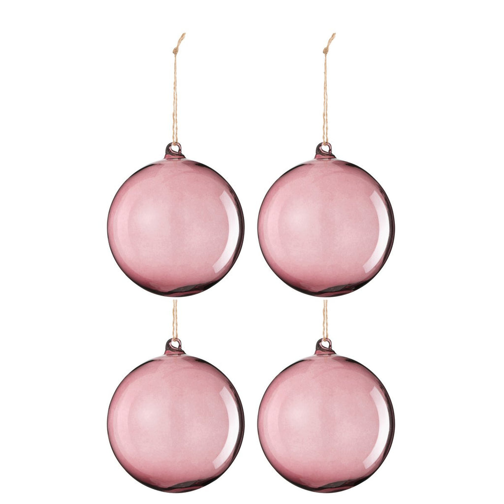 Doos met 4 glazen kerstballen, lichtpaars, groot