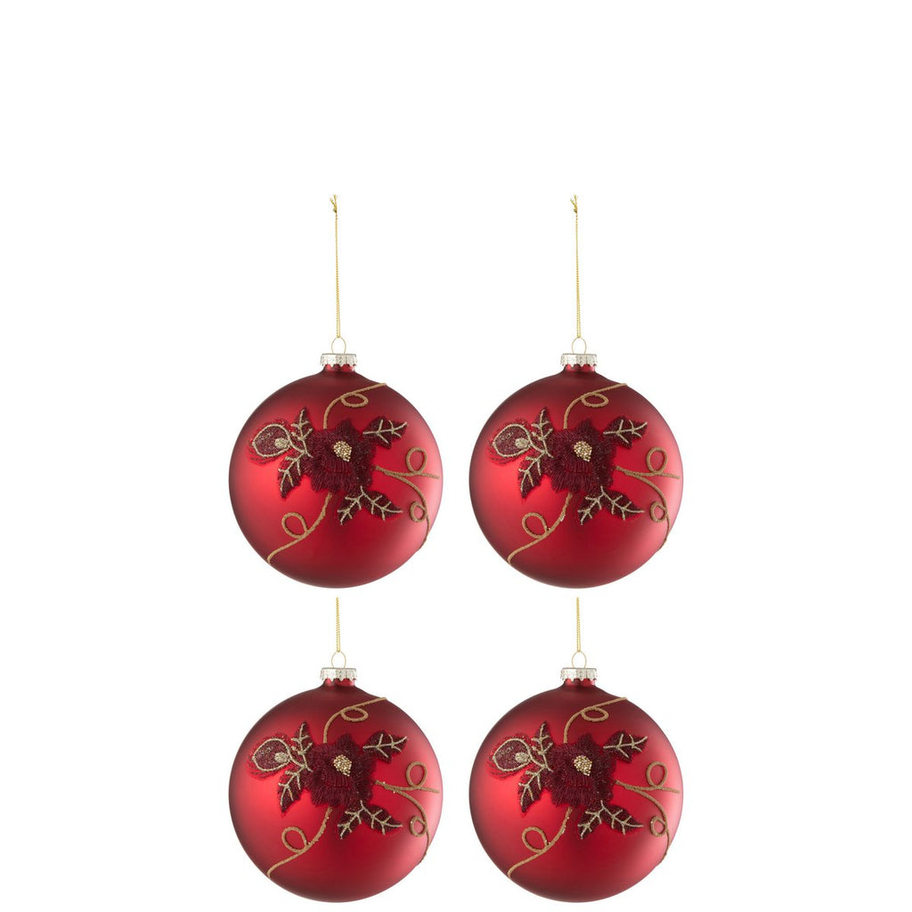 Doos met 4 kerstballen, bloemglas, rood, klein