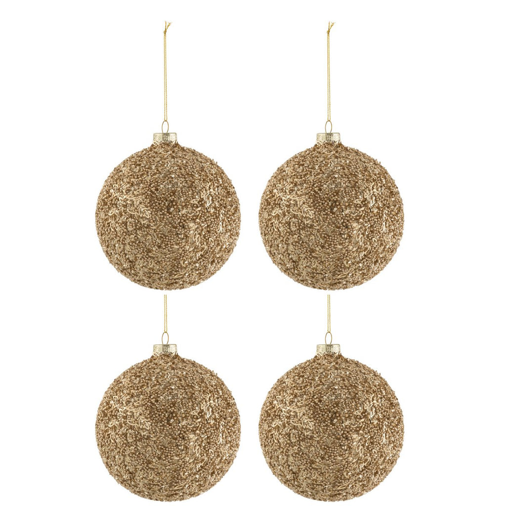 Doos met 4 kerstballen, glinsterend glas, goud, groot