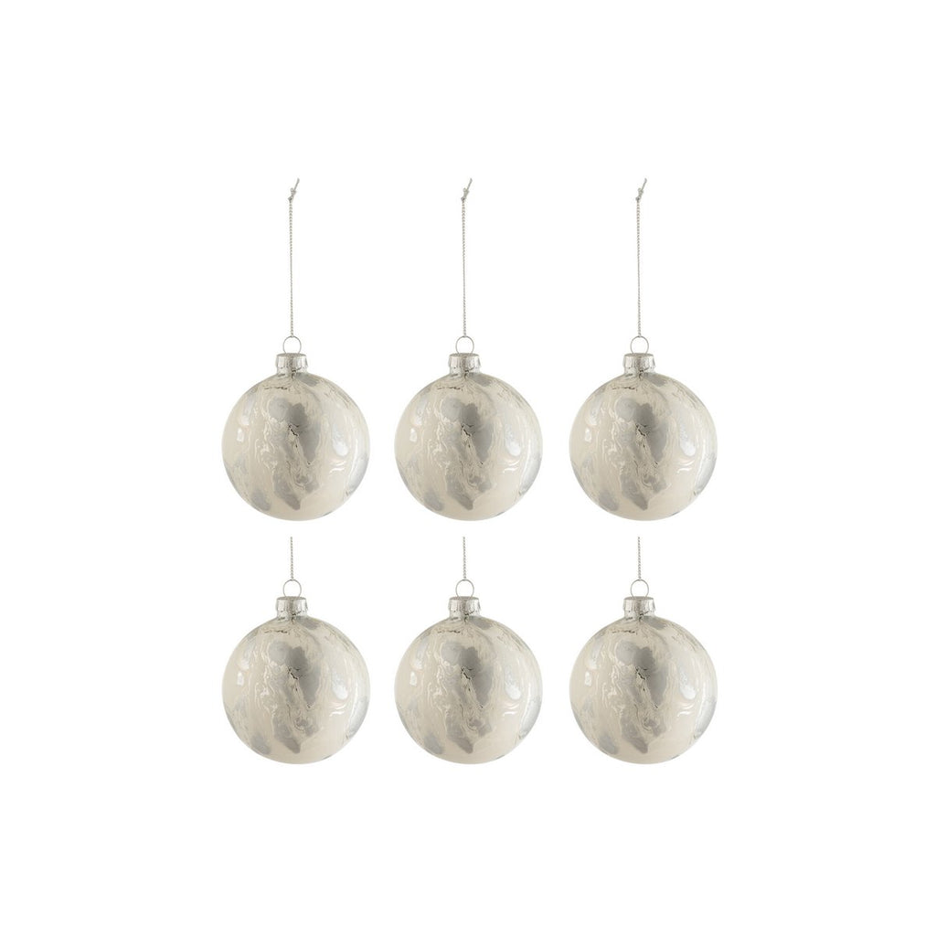 Doos met 6 kerstballen, marmerlook, glas, wit/zilver, klein