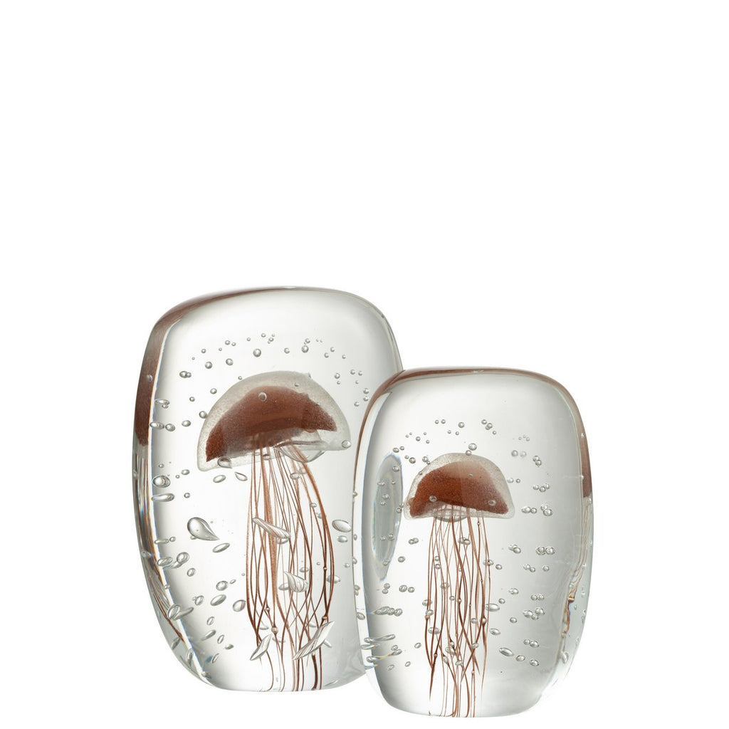 Glasbriefbeschwerer Calypso mit Qualle in Braun