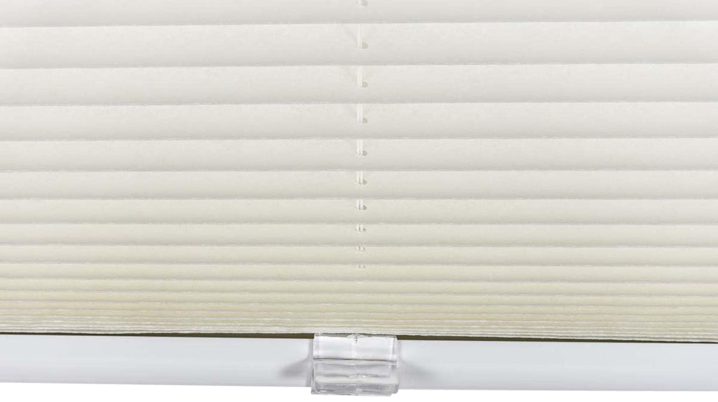 Houd er rekening mee dat het plissé vanwege de klemtechniek niet tussen de glaslatten wordt gemonteerd, maar op de raamvleugel en daarom 2 cm tot 4 cm breder moet zijn dan de ruit.