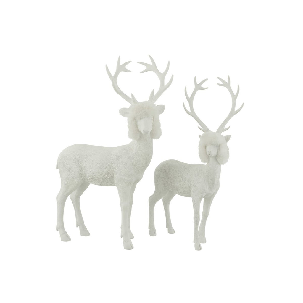 Gefertigt aus hochwertigem Polyresin überzeugt die Figur durch eine detailreiche Ausarbeitung und eine angenehm glatte Oberfläche. Die dezente Farbgebung in Weiß unterstreicht den skandinavisch inspirierten Charakter und macht das Rentier ideal für die Winter- und Weihnachtsdekoration, aber auch als stilvolles Ganzjahres-Dekoobjekt.
