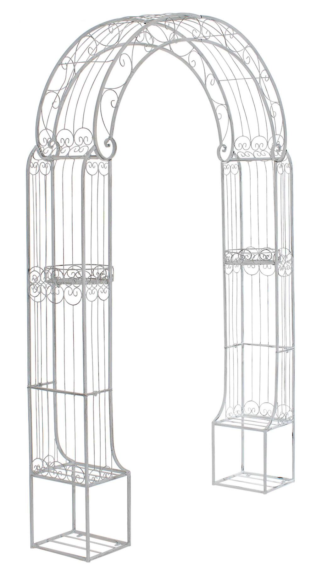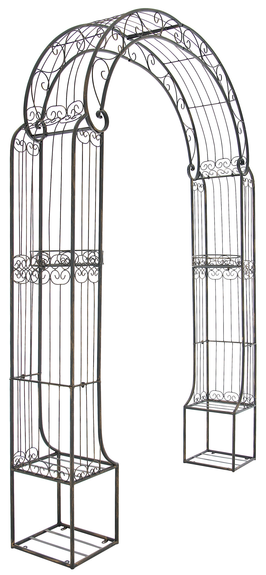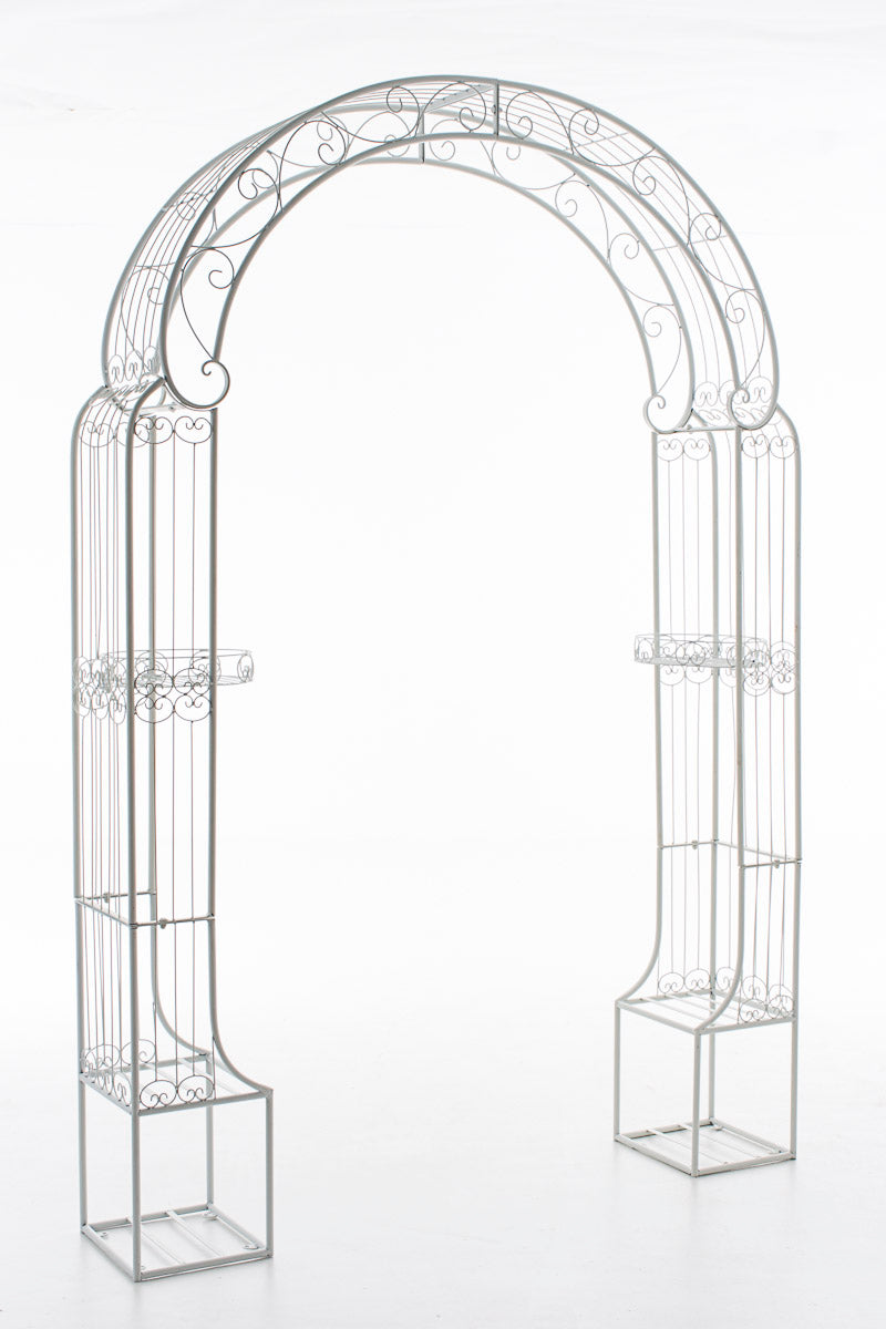 Exclusieve rozenboog van gepoedercoat ijzer. Deze boog heeft een elegant design en is het ideale klimhulpmiddel voor alle klimplanten, zoals rozen of klimop. Hij overtuigt niet alleen door zijn elegante design, maar beschikt ook over in totaal vier opbergmogelijkheden, bijvoorbeeld voor extra planten of andere mooie decoratieve ideeën. Voor de bevestiging worden in totaal acht geprefabriceerde gaten in de basis van de rozenboog gebruikt. Hierdoor kan de rozenboog eenvoudig en snel veilig aan de grond worden bevestigd. Houd er rekening mee dat er geen grondhaken voor bevestiging worden meegeleverd. Deze zijn afzonderlijk te bestellen.