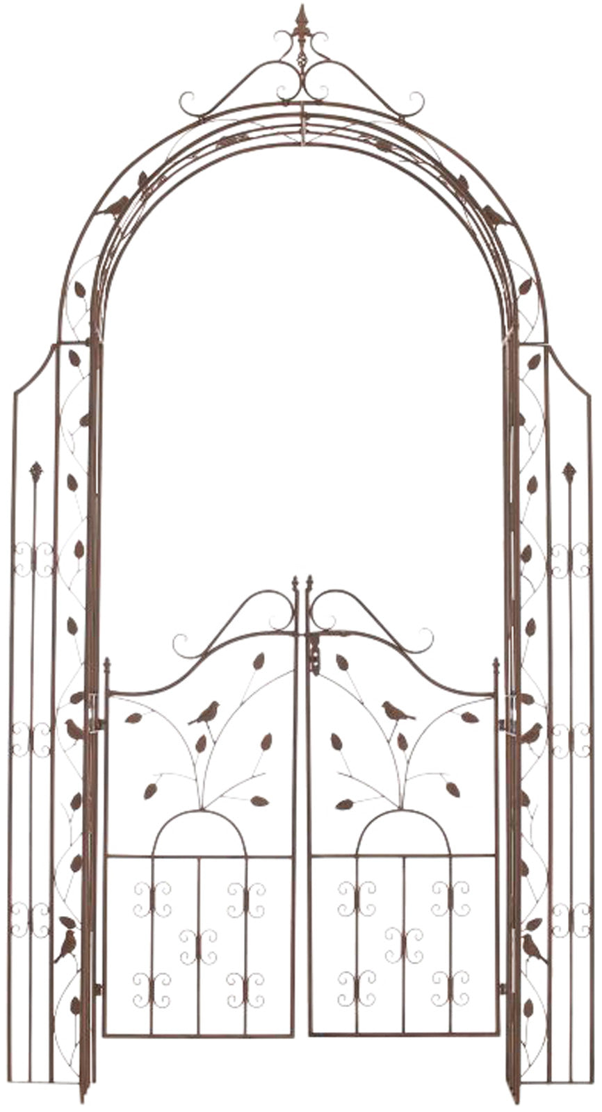 Onze exclusieve Grenada rozenboog met poort is liefdevol versierd met veel details en is daarom perfect als klimhulpmiddel voor klimop en andere klimplanten. Maar ook vrijstaand is deze rozenboog met zijn twee afsluitbare en mooi versierde poortvleugels een blikvanger in iedere tuin.