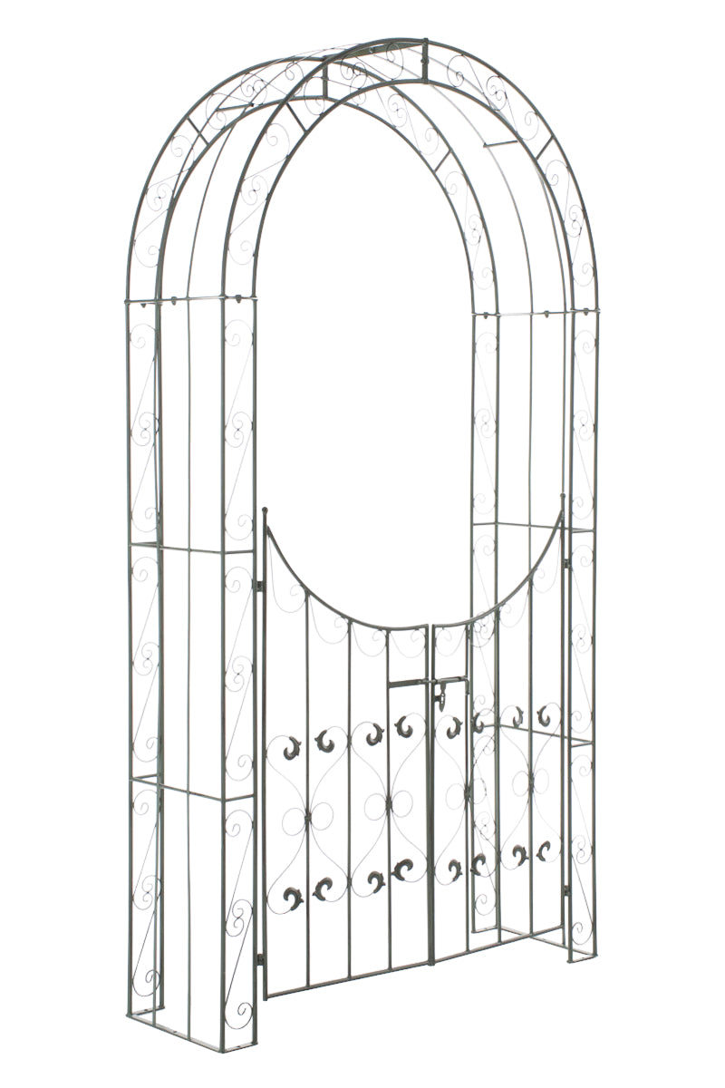 Deze exclusieve rozenboog is perfect voor het creatief inrichten van uw tuin. Hij staat vrijstaand en begroeid met twee afsluitbare en mooi versierde poorten en is een eyecatcher in iedere tuin. Het model "SINA" is handgemaakt van zeer stevige ijzeren pijp. Hij wordt uit slechts enkele onderdelen samengesteld, waardoor een eenvoudige montage en direct gebruik gegarandeerd zijn. Een coating maakt dit klimhulpmiddel van zeer hoge kwaliteit en extreem duurzaam. De liefdevolle decoraties zien er niet alleen prachtig uit, maar bieden uw klimplanten ook veel mogelijkheid om te klimmen. Er is dus sprake van een dichte begroeiing.