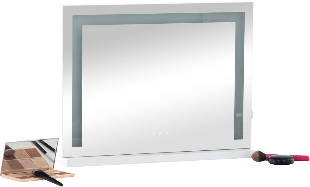 De frameloze make-upspiegel Joliet heeft rondom energiebesparende LED-verlichting. Hierdoor is een optimale verlichting mogelijk. De touchscreenbediening maakt het gebruik eenvoudig. Voor een perfecte lichtregulatie kun je kiezen uit drie verschillende lichtstanden: warm wit, neutraal wit of koel wit en de LED-lampen zijn dimbaar. De spiegel beschikt bovendien over een USB-poort aan de zijkant, waarmee u uw smartphone of andere USB-apparaten kunt opladen. Een stijlvolle Hollywood-spiegel die de sfeer op elegante wijze versterkt.