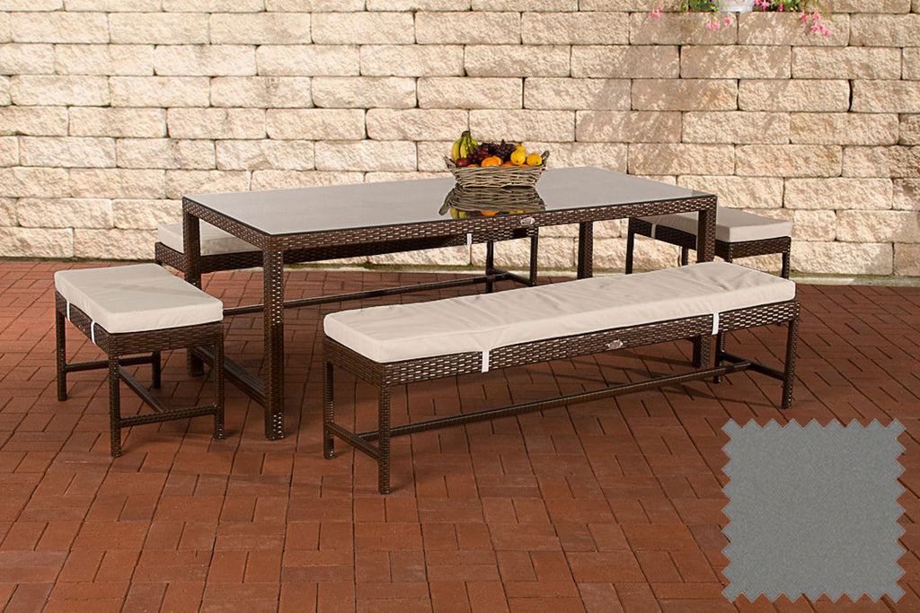 Polyrotan lijkt op conventioneel rotan, maar heeft aanzienlijk meer voordelen. In tegenstelling tot normaal rotan is polyrotan bijzonder geschikt voor buitengebruik, omdat het materiaal zeer duurzaam is en niet tot vezels neigt. Polyrotanvezels zijn waterdicht, onderhoudsvriendelijk en UV-bestendig, zodat ze ook na veelvuldig en langdurig gebruik hun kleurdiepte behouden. Polyrotan meubelen zijn veel lichter dan conventionele tuinmeubelen doordat het frame van aluminium is waardoor ook grote tuinmeubelen makkelijker verplaatst kunnen worden. Het gepoedercoate aluminium maakt het meubel stabiel en blijvend roestvrij. De meerdere stutten zorgen bovendien voor extreme stabiliteit. De kussens hebben hoezen van 100% polyester. Deze zijn water- en vuilafstotend en hebben dankzij hun hoge duurzaamheid een lange levensduur. Dankzij de verborgen ingenaaide ritsen kunnen de hoezen eenvoudig worden verwijderd en indien nodig worden gewassen.