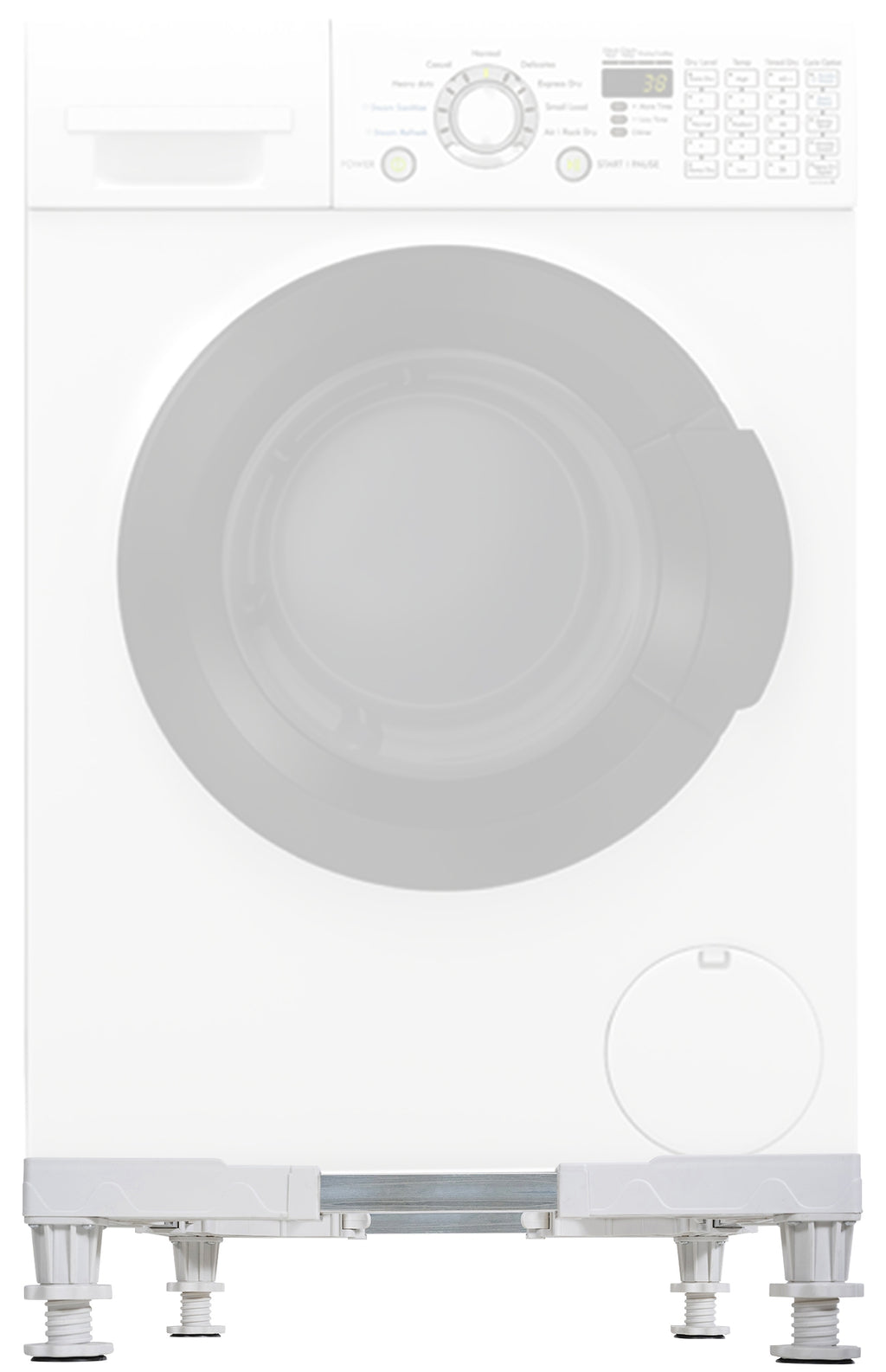 Dankzij de structuur, die als een telescoop kan worden uitgetrokken, kan de maat nauwkeurig worden aangepast (37 - 62 x 37 - 62 cm). Oneffenheden in de vloer kunnen worden opgevangen met behulp van de in hoogte verstelbare poten. De vier geïntegreerde waterpassen zorgen ervoor dat de wasmachinebasis waterpas staat.