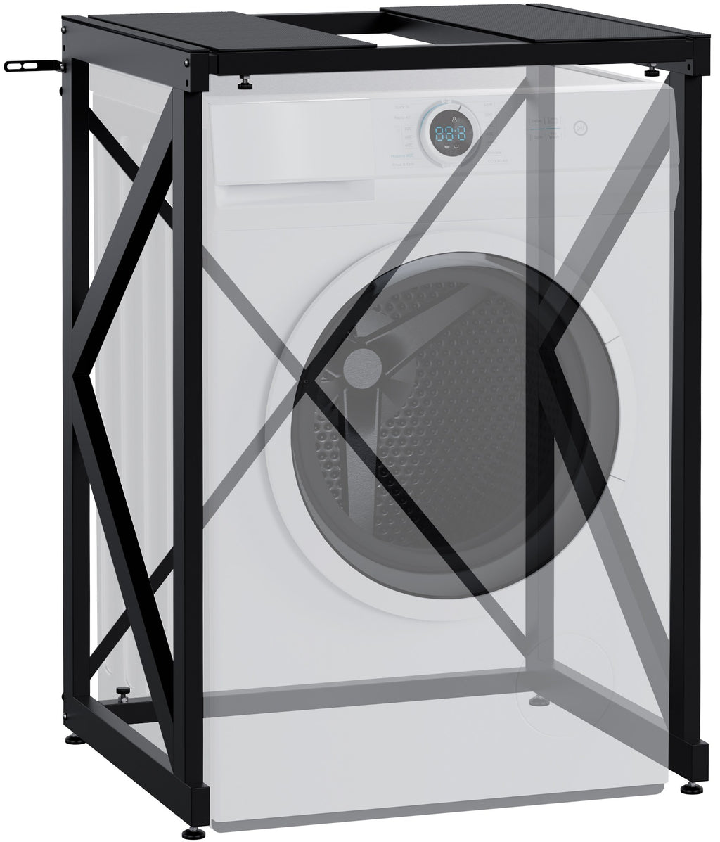 Dit stevige rek heeft een maximaal draagvermogen van 300 kilogram en is daardoor niet alleen geschikt voor wasmachines, maar ook voor andere huishoudelijke apparaten zoals drogers of vriezers. Het rek kan dus als bovenbouw voor één huishoudelijk apparaat worden gebruikt, terwijl een andere machine bovenop het rek kan worden geplaatst.