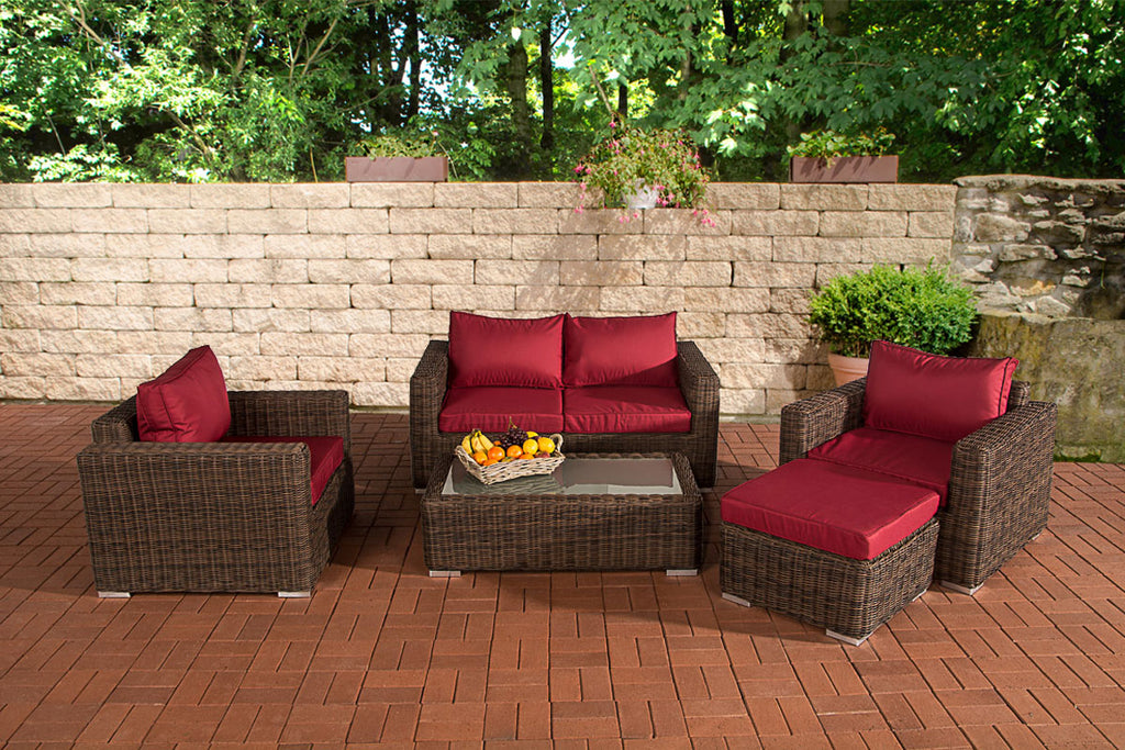 Es handelt sich hierbei um ein komplettes Set Bezüge zu der Gartengarnitur Madeira 2-1-1, Sunset oder Bilbao in bis zu fünf verschiedenen Farben: Anthrazit, Cremeweiß, Eisengrau, Rubinrot oder Terrabraun.