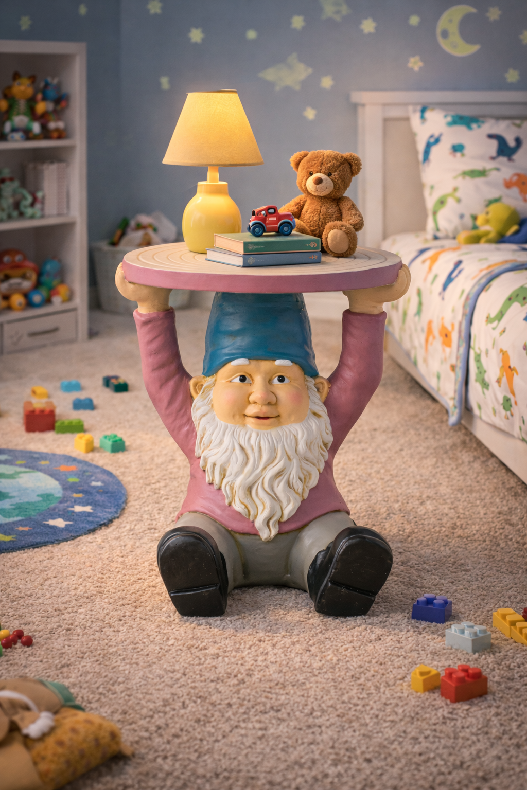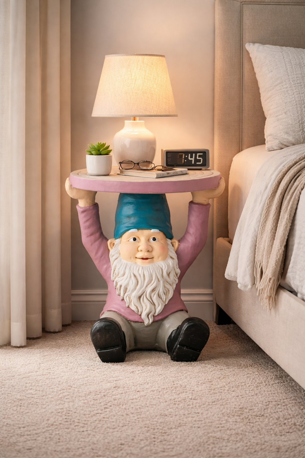Der Beistelltisch Helmuth ist ein echter Hingucker mit Charakter. Gefertigt in liebevoller Handarbeit und gestaltet in Form eines charmanten Zwerges, bringt er Witz und Stil gleichermaßen in Ihre Wohn- oder Gartenwelt. Die Kombination aus mattgrauer und lilafarbener Oberfläche verleiht dem Tisch eine moderne Note, während die handbemalte Verarbeitung ihn zu einem echten Unikat macht.