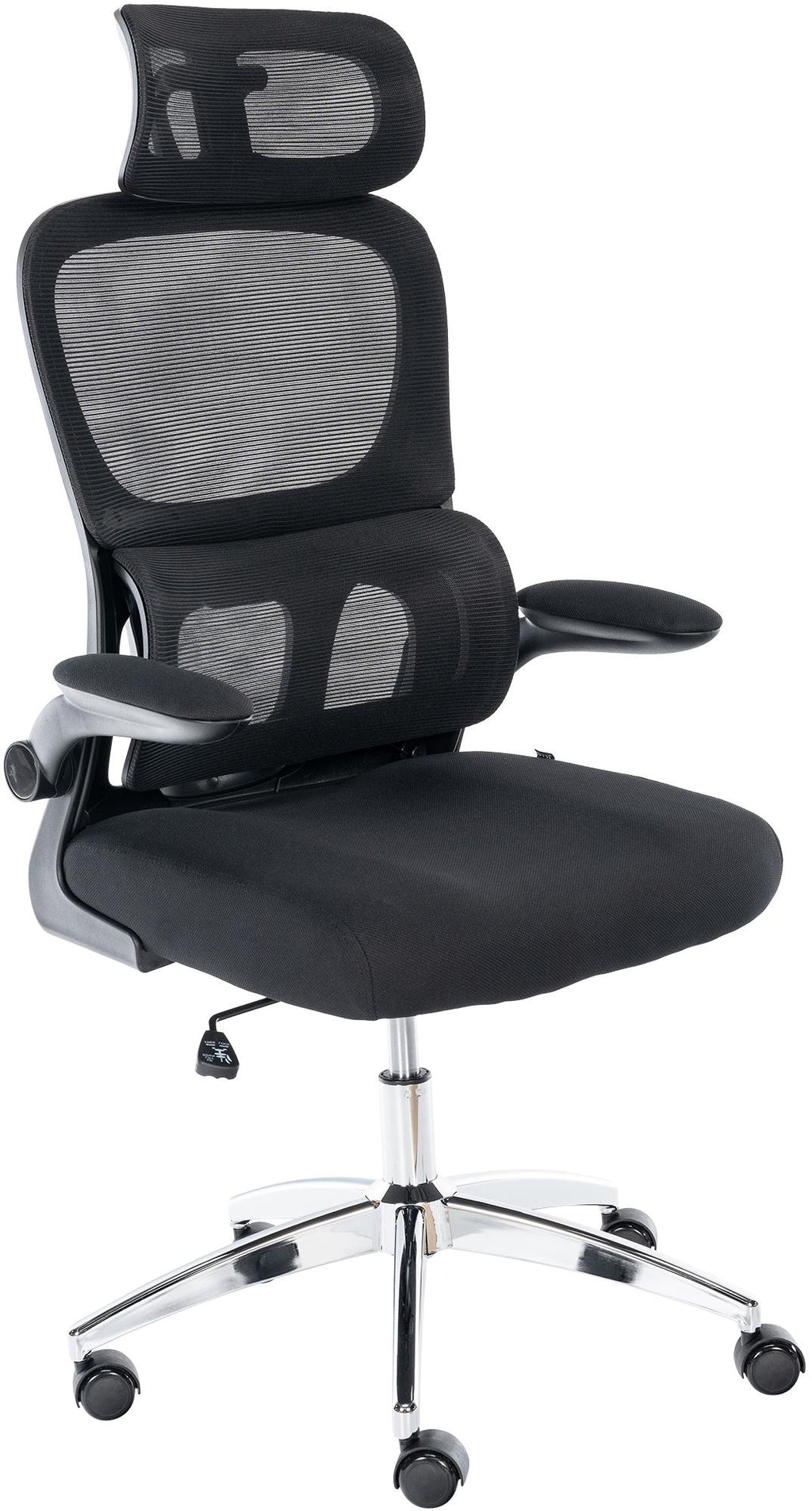 Das atmungsaktive Meshgewebe sorgt für eine gute Luftzirkulation. Die klappbaren Armlehnen ermöglichen platzsparendes Verstauen. Der Stuhl ist höhenverstellbar und verfügt über eine neigbare Rückenlehne. Die Federkraft der Wippfunktion ist individuell einstellbar.
