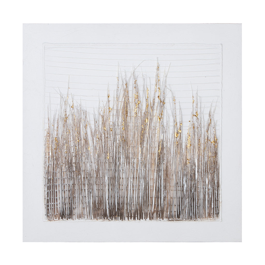 Das quadratische Leinwandbild „Cespuglio“ überzeugt mit ruhiger Eleganz und künstlerischer Tiefe. In fein abgestimmten Weiß- und Naturtönen gehalten, entfaltet das handbemalte Motiv – wie auf dem Foto zu sehen – eine dezente, organische Struktur, die an Gräser oder Sträucher erinnert. Die strukturierte Oberfläche und die ausgeprägte 3D-Optik verleihen dem Bild eine besondere Plastizität und machen es zu einem stilvollen Blickfang. Dank der harmonischen Farbgebung fügt sich das Kunstwerk ideal in moderne, minimalistische oder elegante Wohnkonzepte ein.
