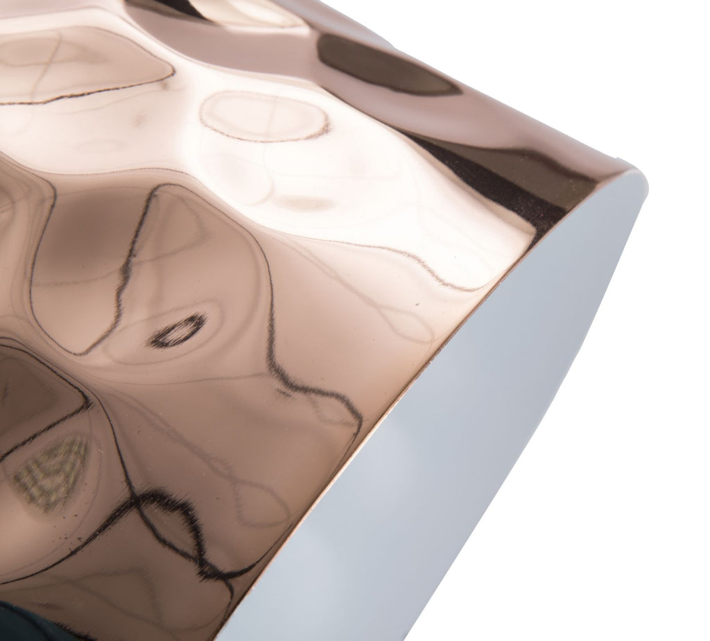 Die Cone Pendelleuchte verbindet modernes Industriedesign mit stilvoller Eleganz. Ihr markanter Metallschirm in glänzender Kupferoptik mit gehämmerter Oberfläche sorgt für ein außergewöhnliches Lichtspiel und verleiht jedem Raum eine besondere Atmosphäre. Mit einem Durchmesser von 27 cm und einer Höhe von 44 cm eignet sich die Leuchte perfekt für Esstisch, Küche oder Wohnzimmer.