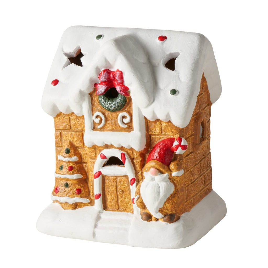 Das 2er Set Dekoaufsteller Ginger bringt festlichen Zauber und gemütliches Licht in dein Zuhause. Die liebevoll handgefertigten und handbemalten Lebkuchenhäuser aus hochwertiger Keramik sind detailreich gestaltet und begeistern durch ihre charmanten Cut-Outs, die das warme LED-Licht sanft hindurchscheinen lassen. In klassischen Weihnachtsfarben bemalt, verleihen sie jedem Raum eine behagliche, märchenhafte Atmosphäre.