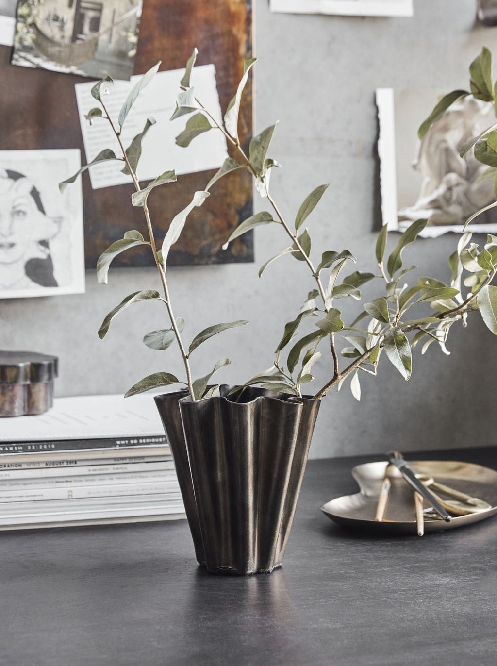 Diese Vase von House Doctor kombiniert auf perfekte Weise den industriellen Look mit zeitloser Eleganz. Die Vase ist aus Eisen mit einem antik-braunen Finish und die Oberfläche bekommt dadurch einen bewusst unvollkommenen Ausdruck, der den Charme der kleinen Vase unterstreicht. Stell die Vase überall hin, wo du ein kleines Update brauchst - ins Regal, auf den Couchtisch oder auf die Fensterbank. Ein Detail, das garantiert für Aufmerksamkeit sorgen wird.