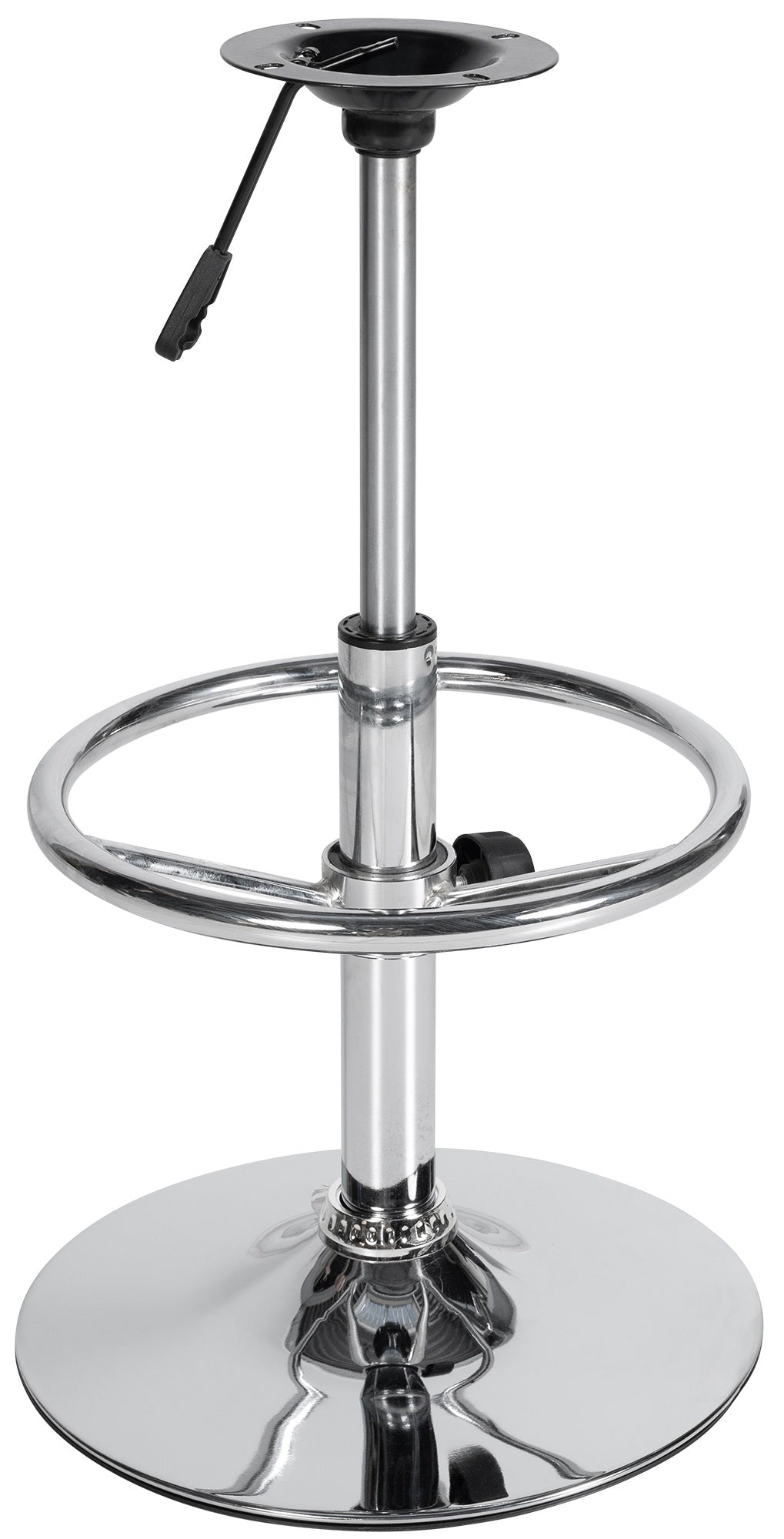 Diese Barhockersäule aus Metall in Chromoptik eignet sich perfekt als Ersatzteil bzw. zur Reparatur eines Barhockers. Der Lochabstand der Sitzaufnahme beträgt 10 x 10 cm, sodass Sitze mit diesen Abmessungen auf dem Gestell installiert werden können. Ist bei Ihrem Barhocker lediglich das Gestell defekt, sparen Sie sich somit den Neuerwerb eines vollständigen Hockers. Auch Bastelfreudige können eigenkreierte Sitzschalen (mit entsprechendem Lochabstand von 10 x 10 cm) mit diesem Gestell kombinieren. Die Barhockersäule ist drehbar und höhenverstellbar. Die komfortable, rundumlaufende Fußstütze sorgt für ein optimales Sitzgefühl. Sie ist mithilfe des Rädchens ebenfalls drehbar und höhenverstellbar und kann in der gewünschten Position eingestellt werden.
