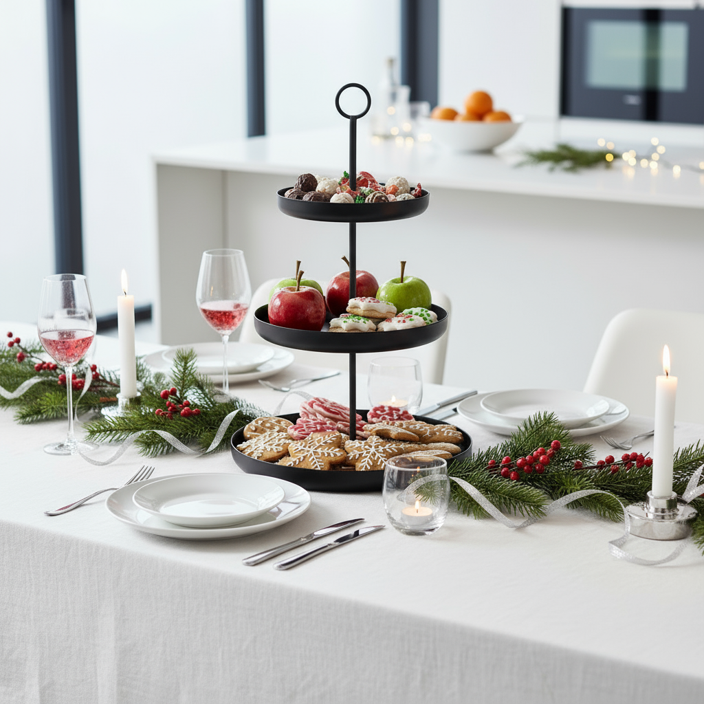 Die Etagere Modena begeistert mit ihrer klaren Formensprache und einem modernen, minimalistischen Design. Gefertigt aus pulverbeschichtetem Eisen in elegantem Mattschwarz, fügt sie sich nahtlos in jede Einrichtung ein – ob modern, industriell oder klassisch. Die drei runden Ebenen bieten ausreichend Platz für Gebäck, Obst, Dekoration oder Snacks und machen Modena zum stilvollen Mittelpunkt auf jedem Tisch oder Sideboard. Der praktische Rundgriff sorgt für einfaches Umplatzieren, während die solide Verarbeitung und das durchdachte Design für Stabilität und Langlebigkeit stehen.