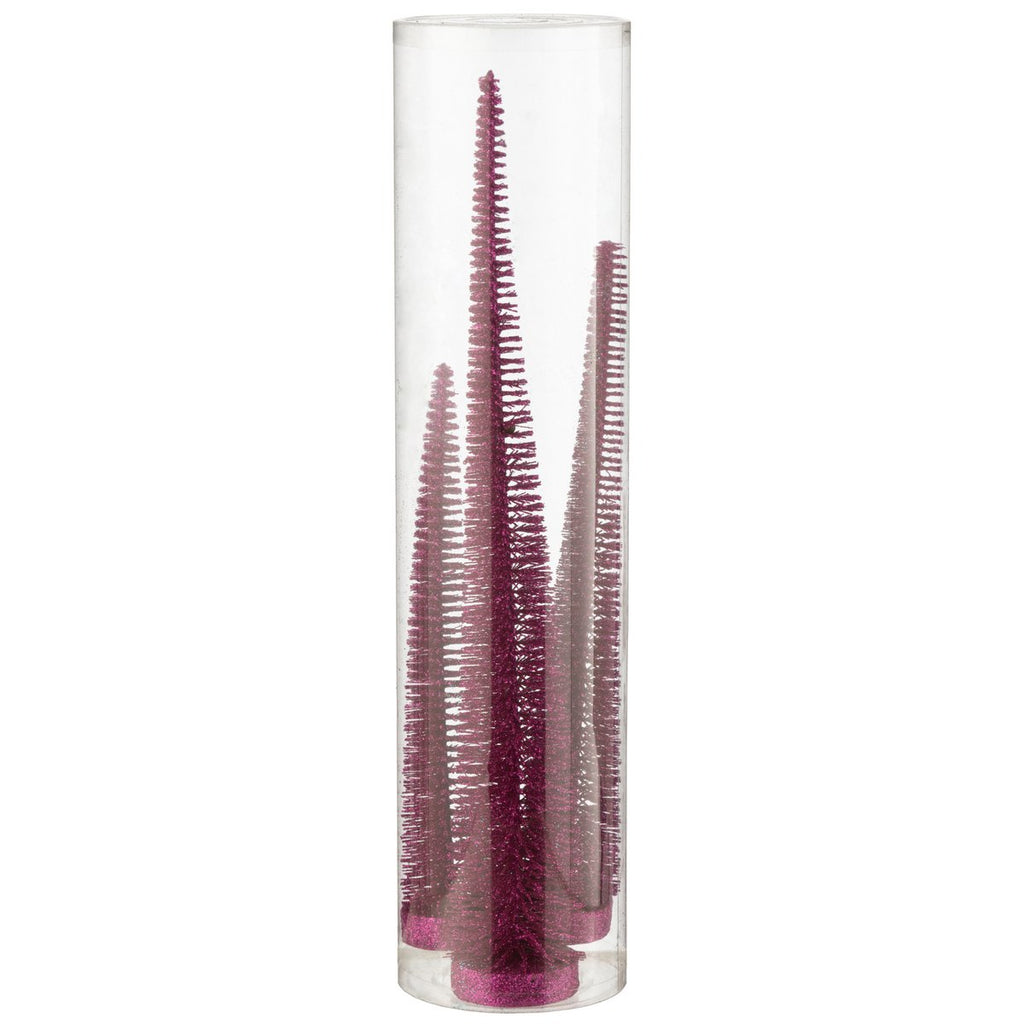 J-Line Box mit 3 Weihnachtsbaum-Dekorationen aus glitzerndem Kunststoff in Fuchsia