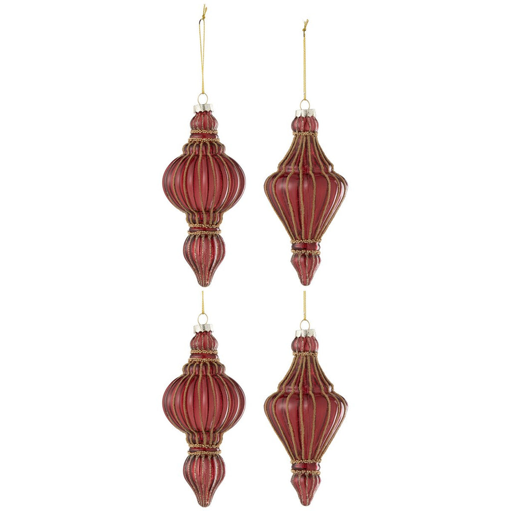 J-Line Box mit 4 Weihnachtskugeln, 2+2 Tropfen, Ornament, Glas, Rot/Gold