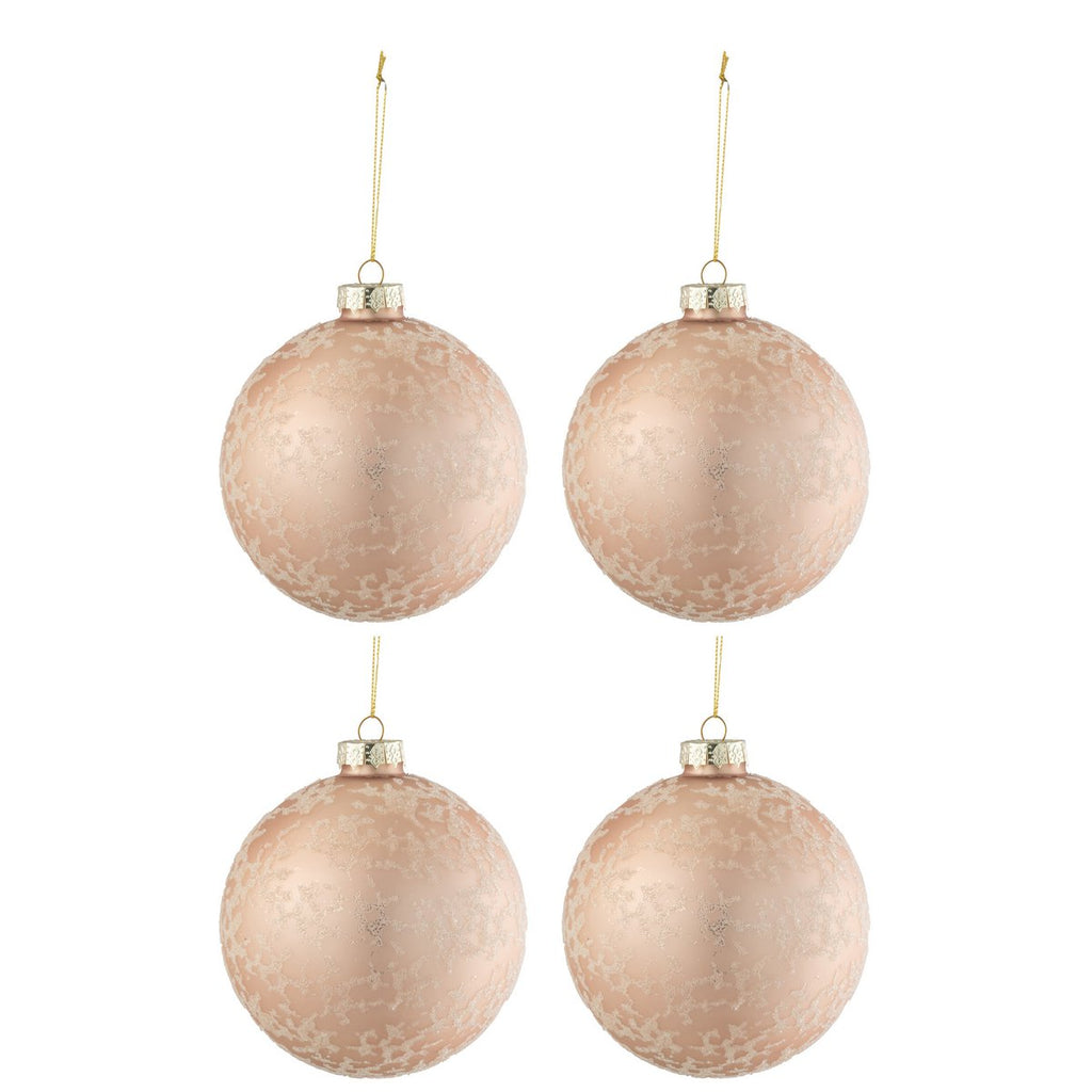 Box mit 4 Weihnachtskugeln aus Zuckerglas, matt, hellrosa, groß