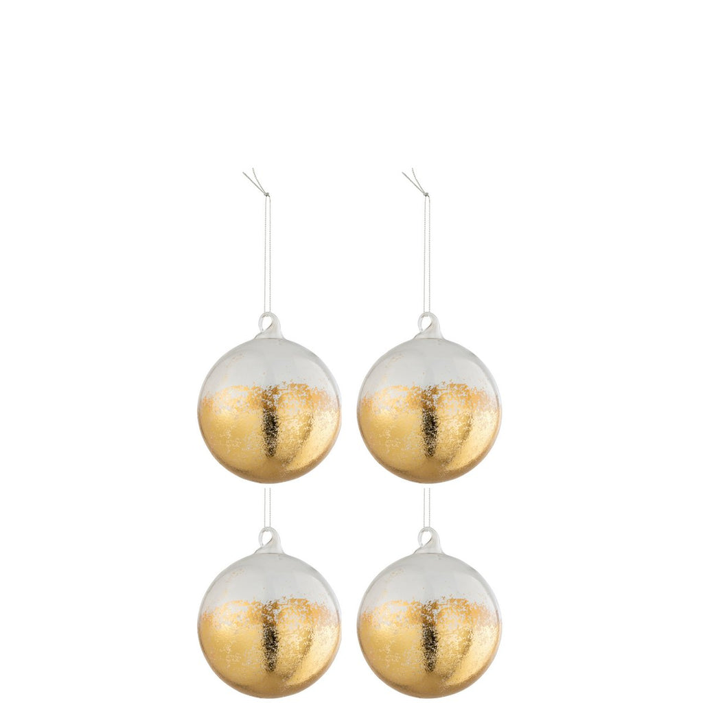 J-Line Box mit 4 Weihnachtskugeln, glänzendes Gold, Glas, transparent, mittelgroß