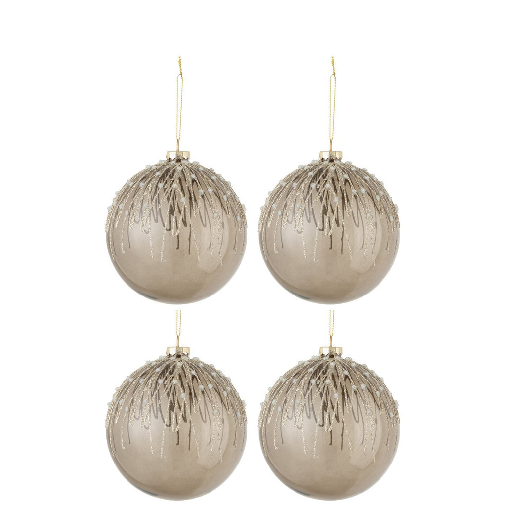 J-Line Box mit 4 Weihnachtskugeln, Perlen, Glitzer, Glas, Grau, groß