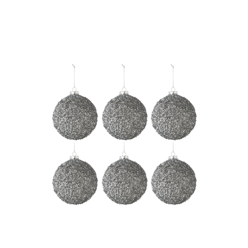 J-Line Box mit 6 Weihnachtskugeln aus glitzerndem Glas, rauchgrau, klein