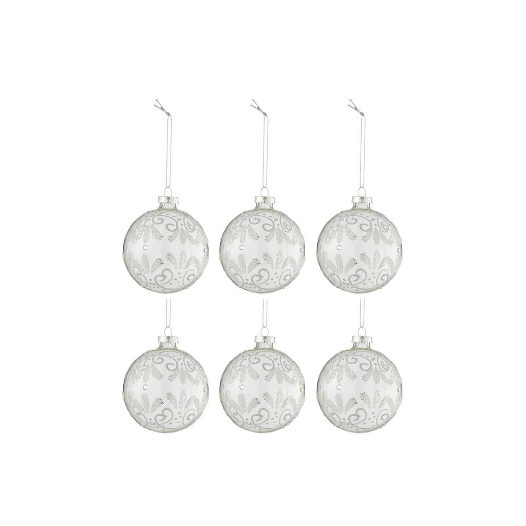 J-Line Box mit 6 Weihnachtskugeln, Locken, Glitzer, Silber, Glas, transparent, klein