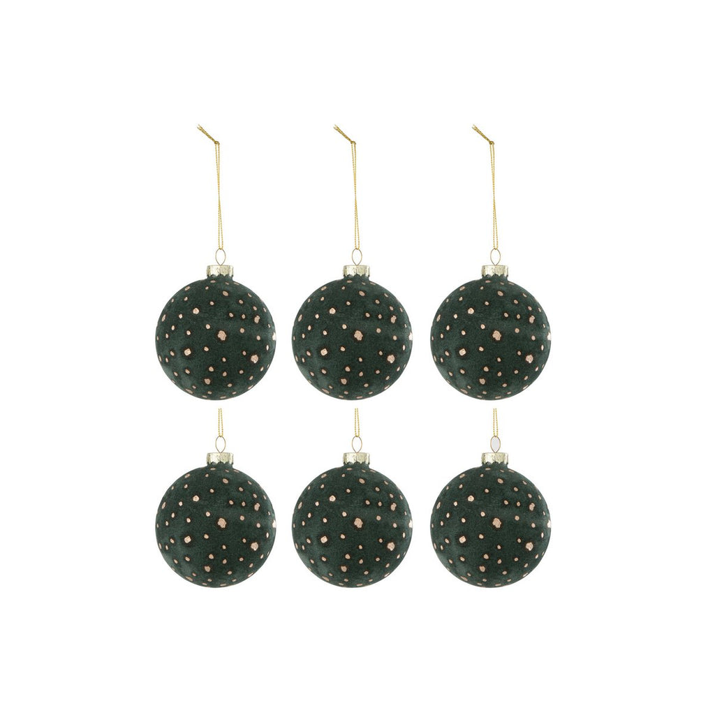 J-Line Box mit 6 Weihnachtskugeln, Punkte, Samtgrün/Gold