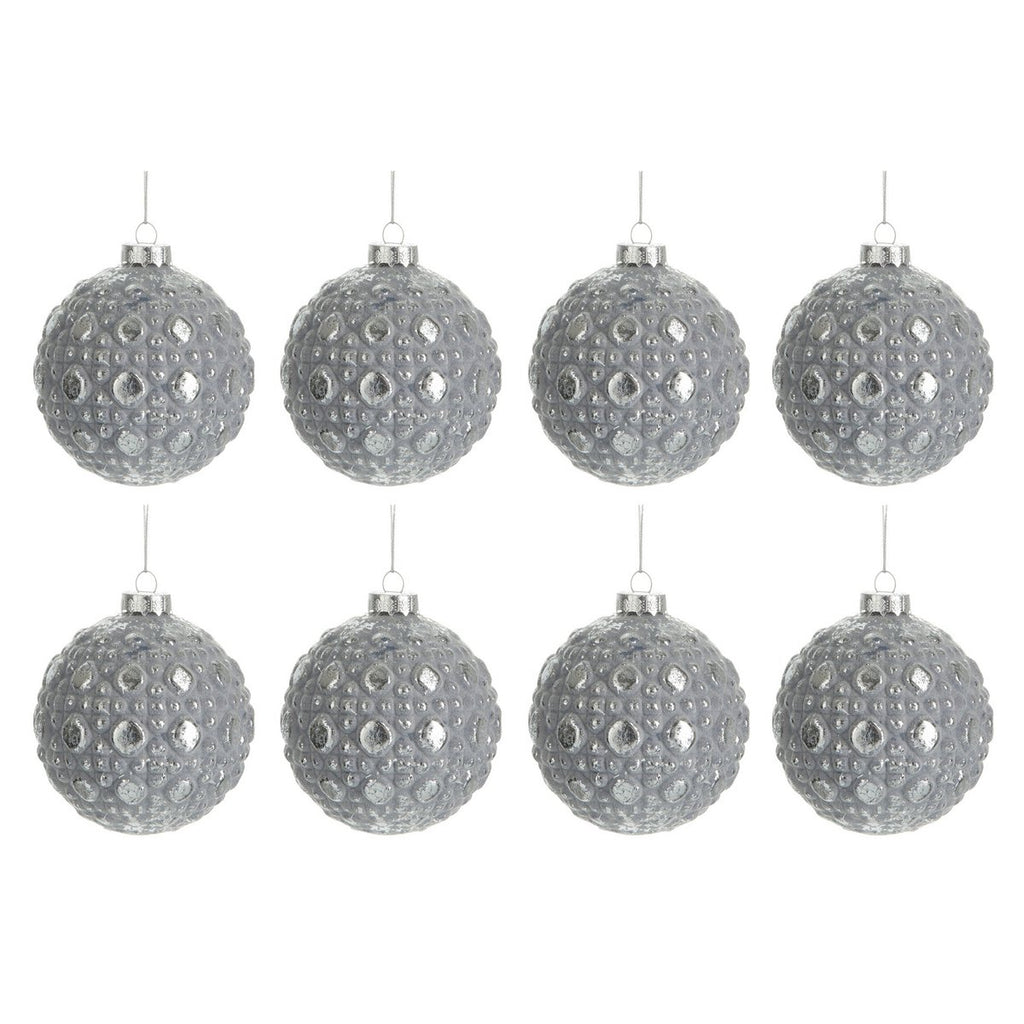 J-Line Box mit 8 Weihnachtskugeln, rundes Muster, Glas, Antikgrau, klein, 8 cm