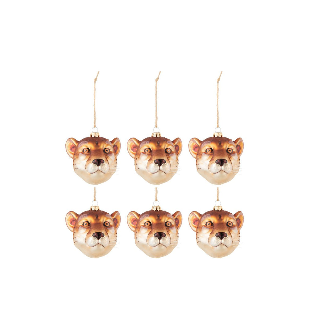 Weihnachtskugel Löwenkopf - Glas - Braun - 6er-Box