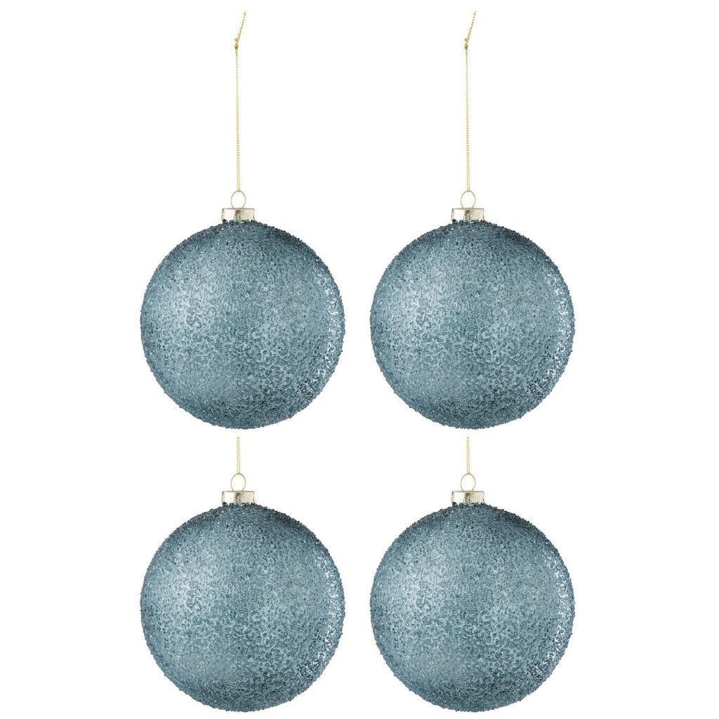 J-Line Weihnachtskugel Perlen – Glas – Blau – groß – 4er-Box