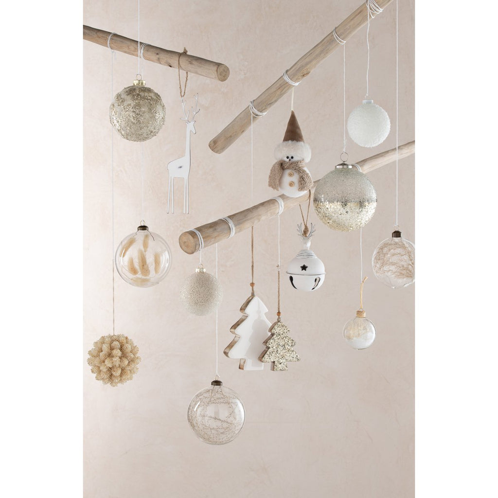 Weihnachtskugel Snowy – Glas – Weiß – klein – 6er-Box