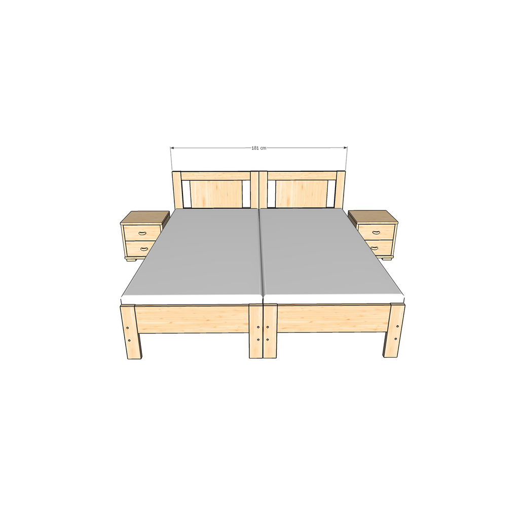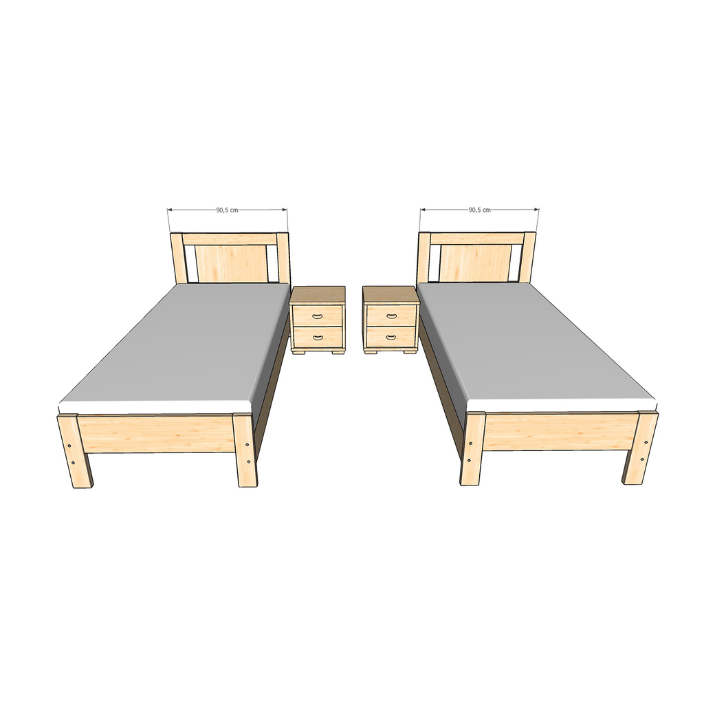 Das modern Jana-Bettgestell in der Familienbett-Version, das speziell für die Unterbringung von mehreren Personen individuell entwickelt wurde. Das Bett kann in beliebiger Anzahl kombiniert werden. Die Gesamtbreite des Bettes beträgt 90,5 cm. So können zwei oder mehr Betten miteinander verbunden werden. So entsteht aus einem Einzelbett sofort ein Doppelbett mit einer 180 cm Matratzenbreite, sodass zwischen den Matratzen kein Spalt entsteht. Darüber hinaus können die beiden Bettrahmen miteinander verriegelt werden. Wenn kein Doppelbett benötigt wird, kann es als Einzelbetten verwendet werden. Kein Umbau notwendig. Die Betten werden am Kopf- und Fußteil einfach mit einem Handgriff als Einzelbett umfunktioniert.