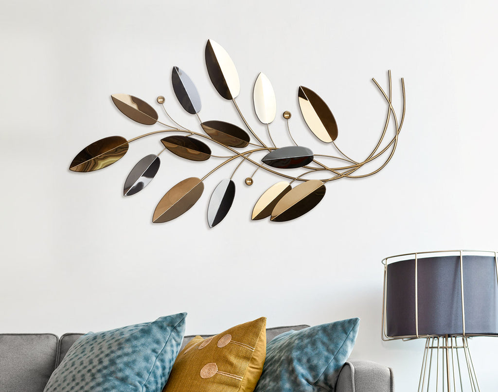 Beschreibung: Wandrelief, Zweig, "Shiny", Metall, goldfarben, VE 1, L. 5 cm, B. 56 cm, H. 100 cm