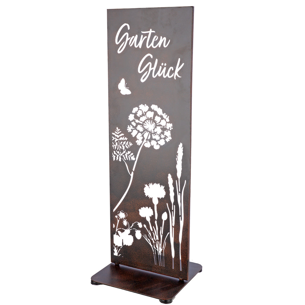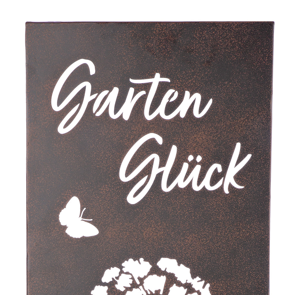 Das Standrelief Wildora ist eine stilvolle Gartendekoration, die natürliche Eleganz und liebevolle Details miteinander verbindet. Mit seinem filigranen Blumenmotiv und dem harmonischen Schriftzug Garten Glück setzt es einen besonderen Akzent im Garten, auf der Terrasse oder im Eingangsbereich. Die warme braune Farbgebung verleiht dem Metallrelief eine ruhige, natürliche Ausstrahlung und fügt sich harmonisch in jede Umgebung ein.
