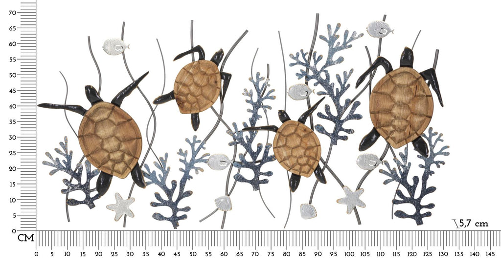 Wanddeko Metall Schildkröten 132 cm – Maritimes Wandpaneel