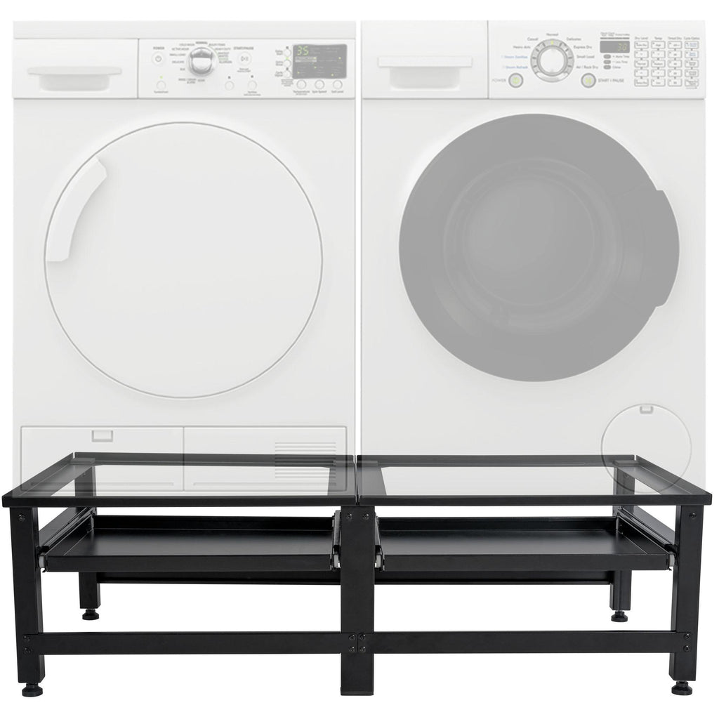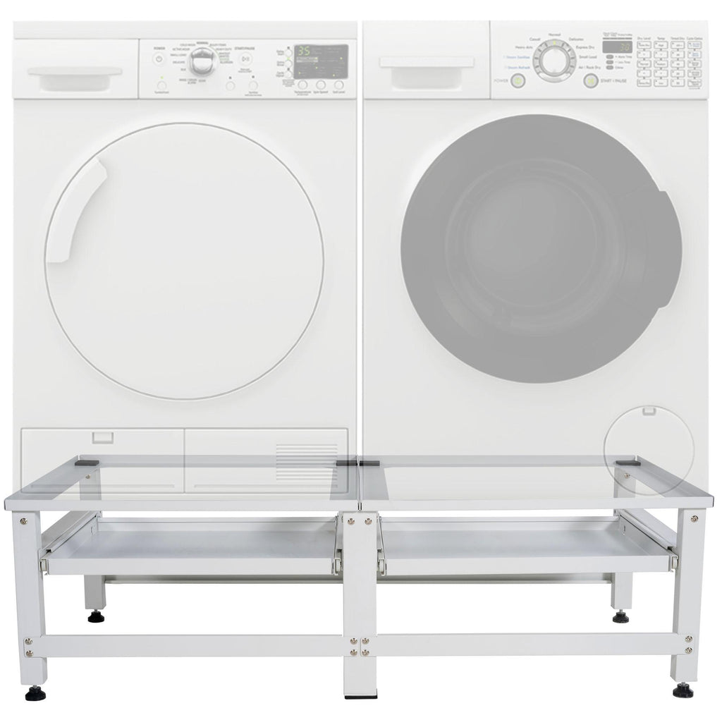 Beide Hälften sind jeweils mit bis zu 200 Kilogramm belastbar (insgesamt 400 kg), sodass das Gestell stabil genug ist, auch schwere Geräte zu tragen. Das Waschmaschinenregal eignet sich mit seiner Passform für eine Vielzahl von Waschmaschinen und ist sowohl in Weiß als auch in Schwarz erhältlich.