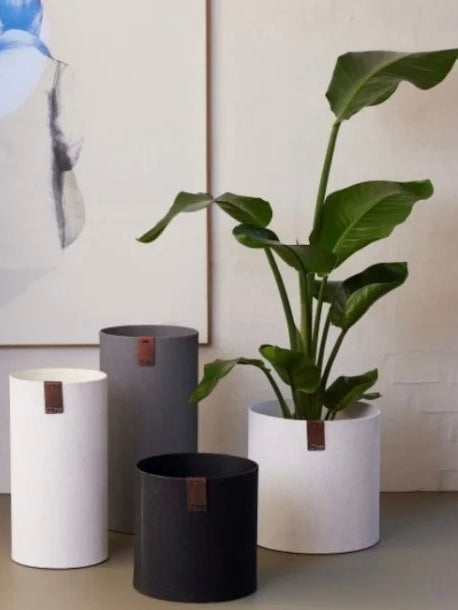 Schlichte Zylindervase aus recyceltem Papier. Die Oberfläche ist sandgestrahlt und hat dadurch eine unregelmäßig körnige Struktur. Innen mit einer wasserfesten Beschichtung versehen. Die minimalistisch anmutende Vase kann auf dem Tisch oder als Bodenvase genutzt werden. Ideal auch als Schirmständer zu nutzen.